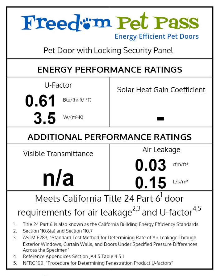 All Freedom Pet Pass doors come with energy-efficiency ratings attached for easy reference by code officials.